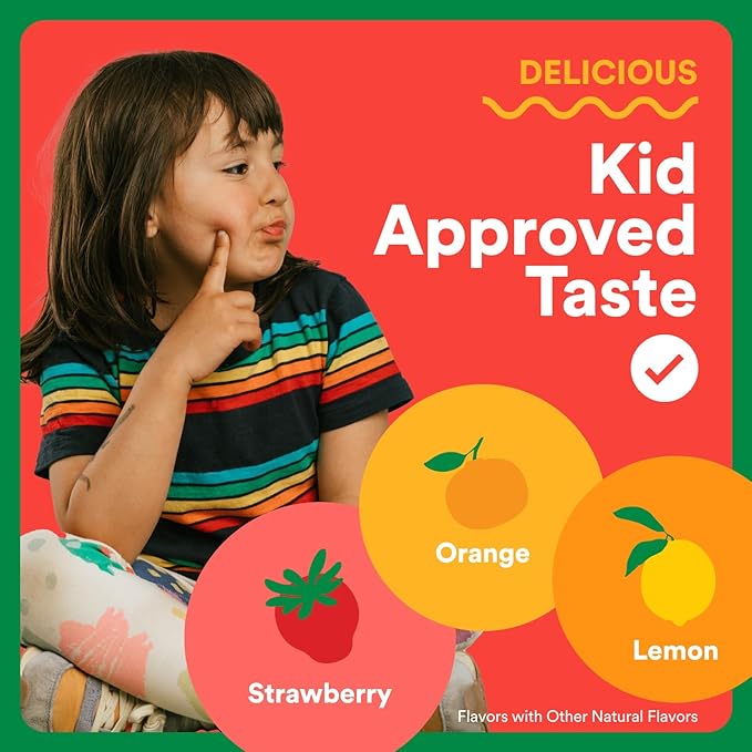 - DELICIOUS TASTE & KID-APPROVED: Strawberry, Orange, and Lemon Flavors with Other Natural Flavors. Kids 4 years and older now take 3 gummies daily. May be taken with or without food. Chew each gummy thoroughly.