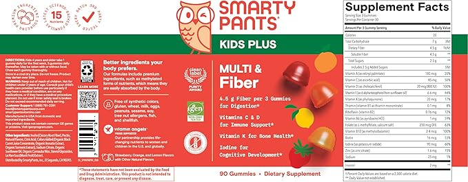 - PREMIUM, SCIENCE-BACKED GUMMY MULTIVITAMIN SUPPLEMENTS FOR KIDS: SmartyPants Kids Multi & Fiber contains 36% more nutrients than the leading kid’s fiber gummy** and is specifically formulated to help fill average nutrient gaps kids may have.