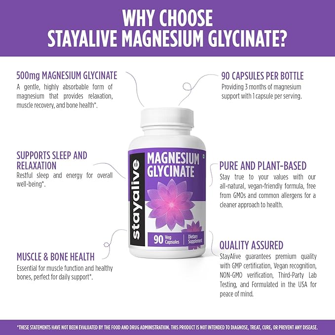 - ✅ Inspiring Health Mantras: At StayAlive, we believe in a holistic approach to wellness. By combining a balanced diet, regular exercise, and a mindful lifestyle with natural supplements like our magnesium mineral supplement, you can support your overall health and vitality. Let's embark on this journey toward resilience and energy, one healthy choice at a time.