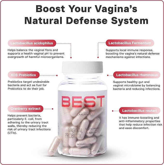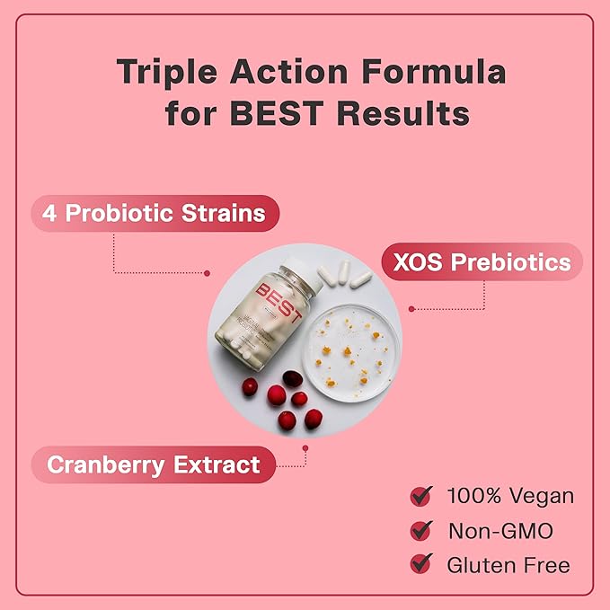 - Clinically Formulated Ingredients – BEST vaginal probiotics for women features 4 powerful Lactobacillus strains (acidophilus, rhamnosus, reuteri, fermentum), XOS prebiotics, and cranberry extract to support balance and natural pH protection.