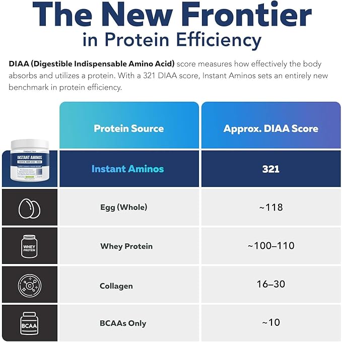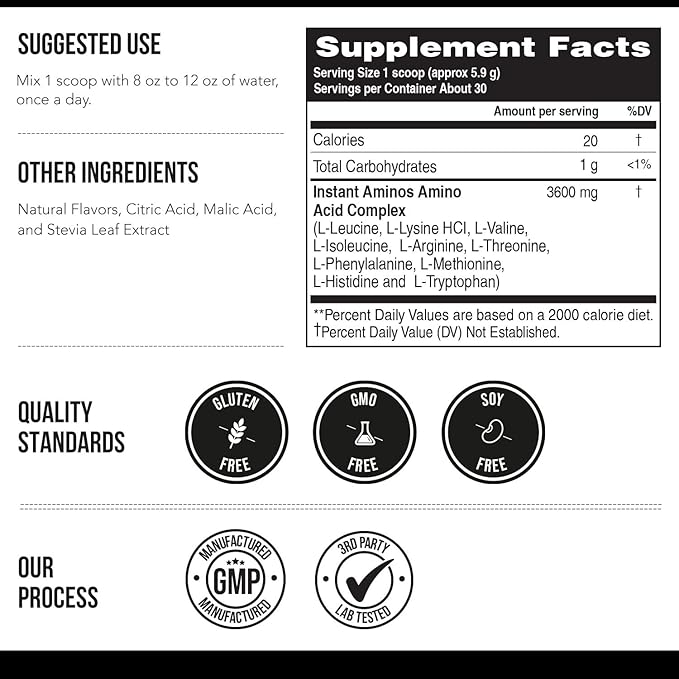 - One Serving = The Power of 25–30g of Protein: Why overload your gut with bulky shakes? Instant Aminos delivers the same muscle-building benefits as 25–30g of protein without the extra calories or digestive strain. It’s the cleanest, most efficient way to fuel your body.