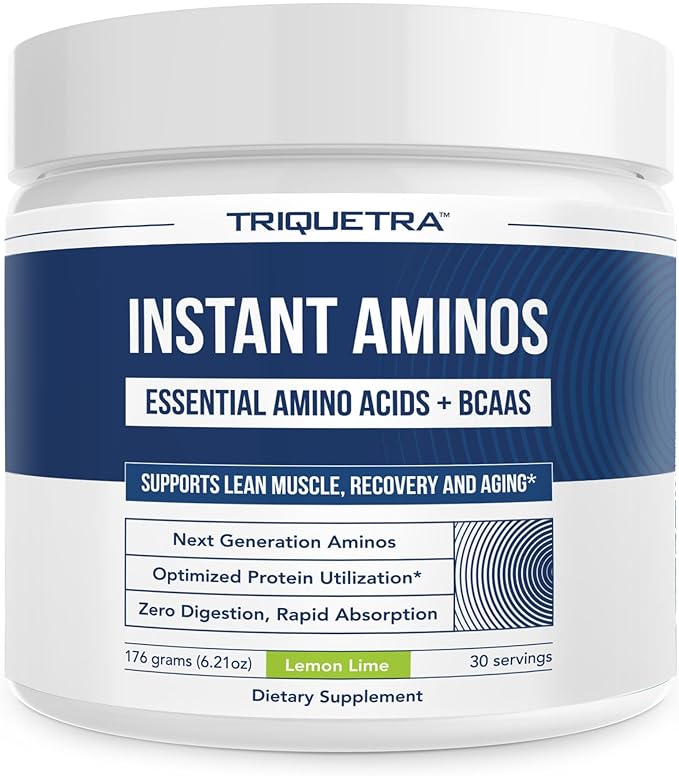 Instant Aminos - EAA+BCAA - 10 Essential Amino Acids Supplement, Rapid Absorption, Zero Digestion - Supports Lean Muscle, Recovery & Aging - 321% DIAAS Protein Score - Lemon Lime (30 Servings)
