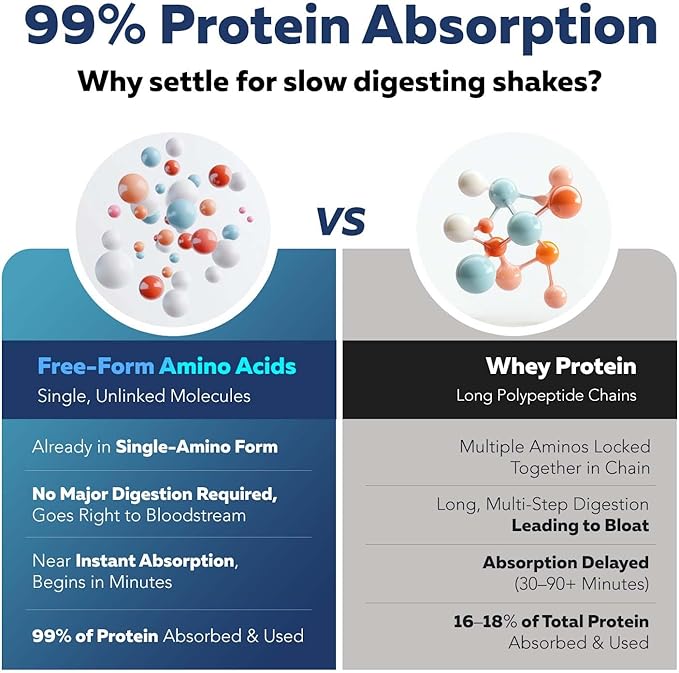 - 5 Minute Absorption, Faster Results: Traditional proteins take 30-90mins to break down. Our aminos acids supplement bypasses digestion entirely with 99% free-form essential amino acids fuelling muscle, energy & recovery instantly minus sluggishness.