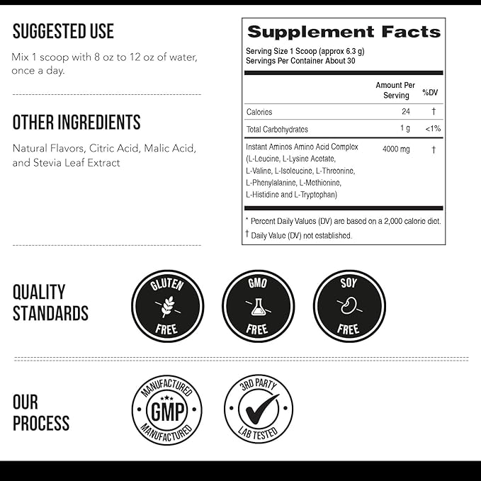 - One Serving = The Power of 25–30g of Protein: Why overload your gut with bulky shakes? Instant Aminos delivers the same muscle-building benefits as 25–30g of protein without the extra calories or digestive strain. It’s the cleanest, most efficient way to fuel your body.