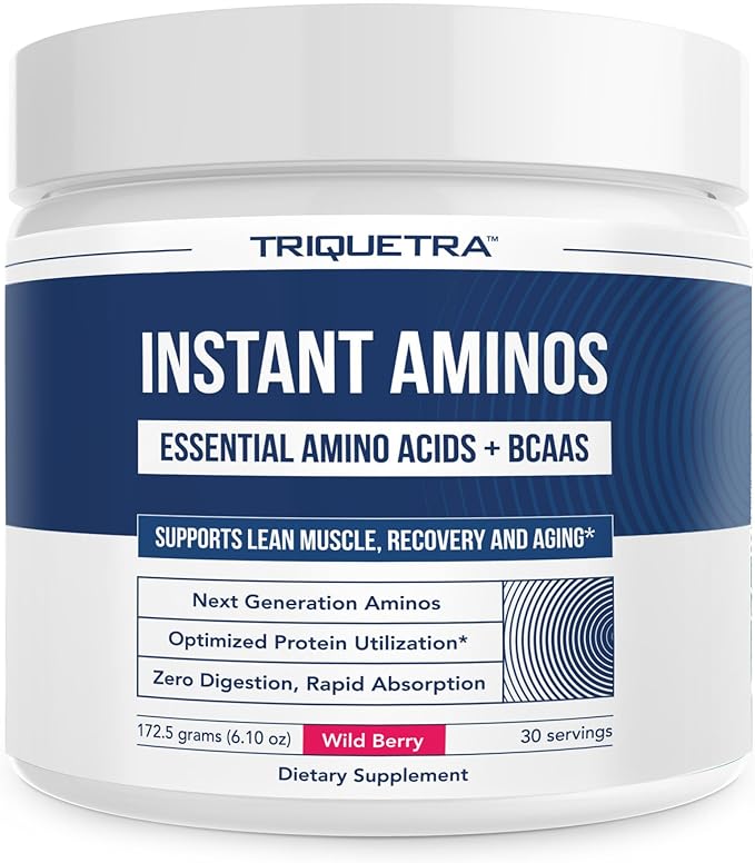 Instant Aminos - EAA+BCAA - 10 Essential Amino Acids Supplement - Rapid Absorption, Zero Digestion - Supports Lean Muscle, Recovery & Aging - 321% DIAAS Protein Score - Wild Berry (30 Servings)
