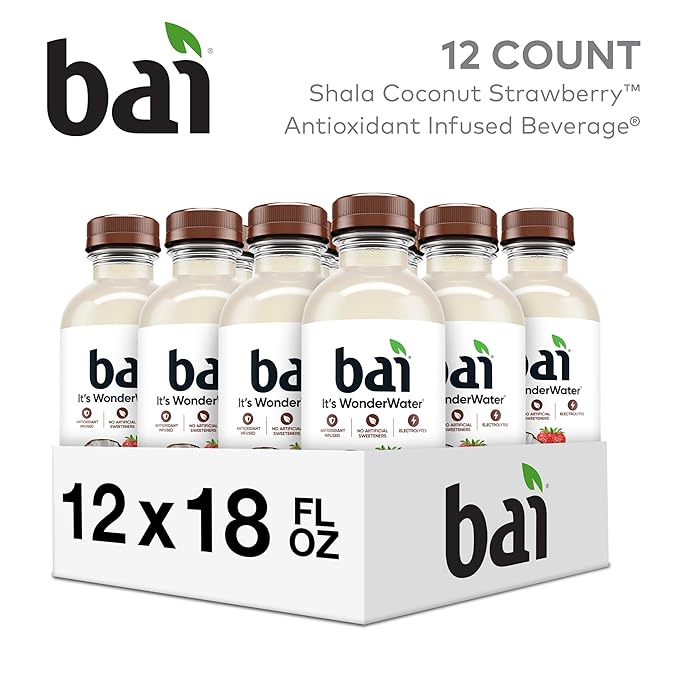 Bai Antioxidant Infused Water Beverage, Shala Coconut Strawberry, with Vitamin C and No Artificial Sweeteners, 18 Fluid Ounce Bottle, 12 Pack