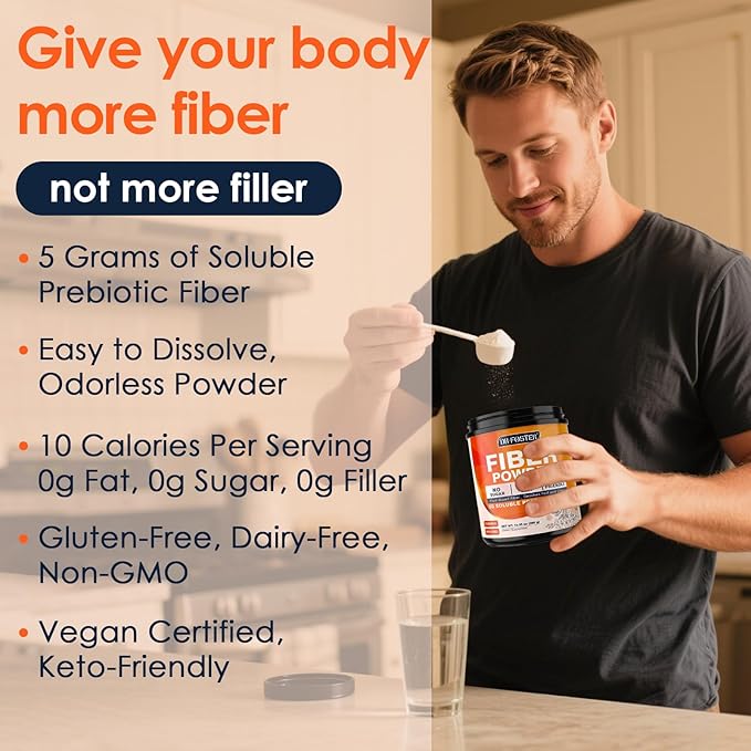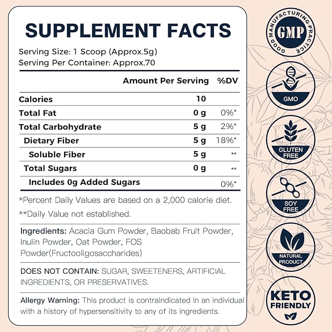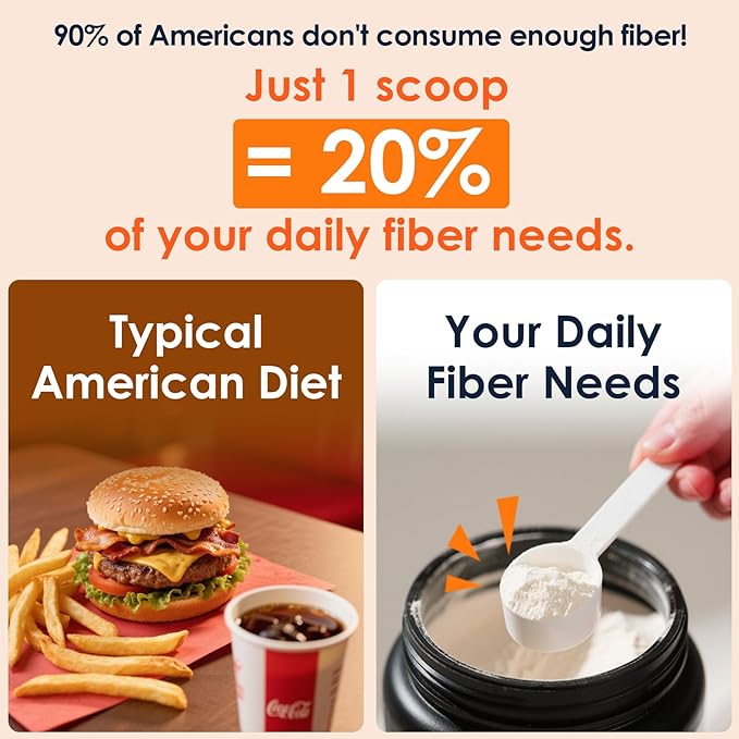 - 100% Plant-Based Fiber: DRFOSTER Soluble Fiber Powder derived from 5 natural high fiber sources: Acacia Fiber Powder, Baobab Powder Organic, Inulin Prebiotic Fiber, Gluten-Free Oat Fiber and FOS Powder. Proven to be more efficient than a single fiber