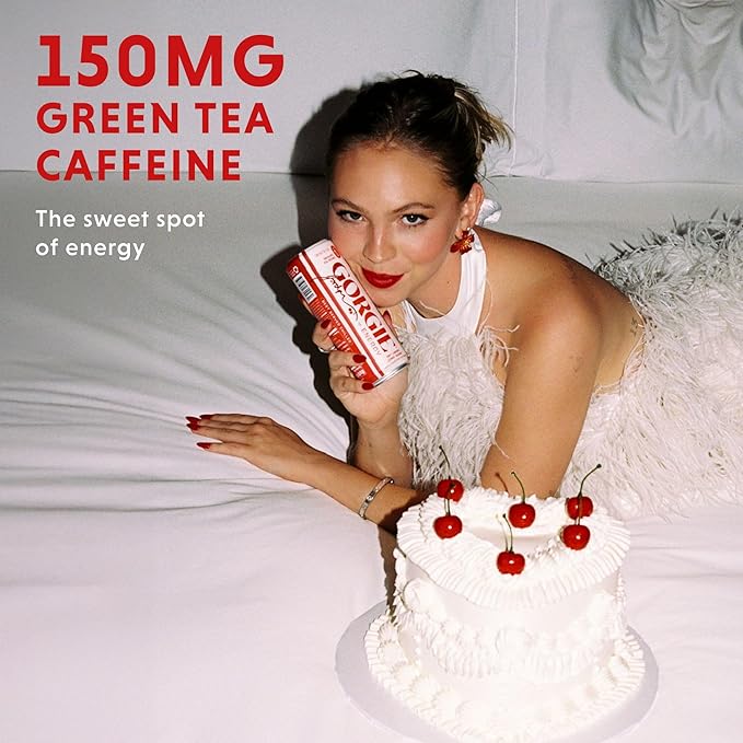 GORGIE Jordyn Jones Cherry Lime, Sugar-Free Natural Energy Drink Sparkling, Healthy Energy Drinks - Green Tea, Biotin, B Vitamins -150mg Caffeine, Vegan, & Low Calorie (Pack of 12)