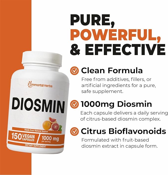 - 🌿 Inspired by Nature, Backed by Science: At Immortal Herbs, we blend ancient herbal traditions with modern scientific practices. By incorporating these diosmin 1000mg capsules into your balanced lifestyle, you can take proactive steps toward overall wellness. Discover the benefits of nature’s finest ingredients with a supplement designed for vitality, resilience, and strength. Start your journey toward enhanced vitality today with our premium diosmin supplement.
