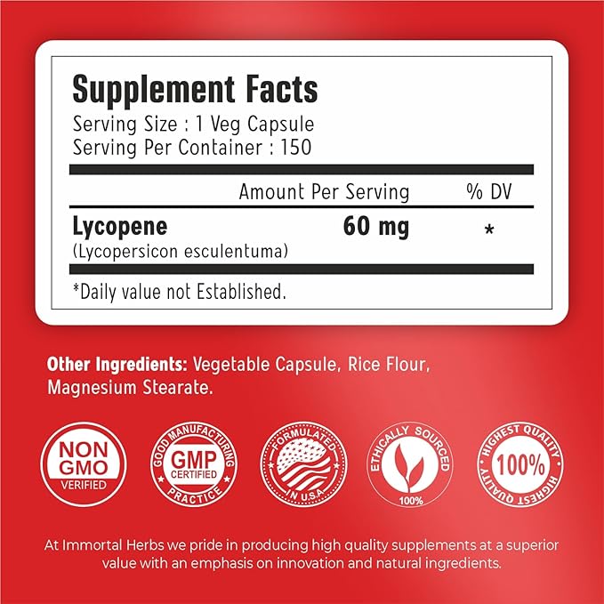 - 🍅 Inspired by Nature, Backed by Science: At Immortal Herbs, we blend ancient herbal traditions with modern scientific practices. By incorporating this lycopene supplement into a balanced lifestyle, you can support your journey toward improved vitality and overall wellness. Discover the benefits of nature’s finest ingredients with a supplement designed for resilience and strength.