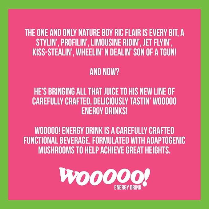 Wooooo! Energy Ric Flair Sparkling Adaptogenic Mushroom Energy Drink | Natural Antioxidants & Nootropics | Lion’s Mane & Cordyceps | 150mg Caffeine | 12 Pack (Dragon Fruit)