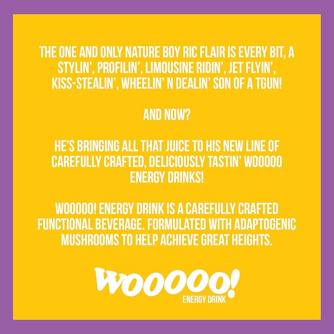 Wooooo! Energy Ric Flair Sparkling Adaptogenic Mushroom Energy Drink | Natural Antioxidants & Nootropics | Lion’s Mane & Cordyceps | 150mg Caffeine | 12 Pack (Pineapple Berry)
