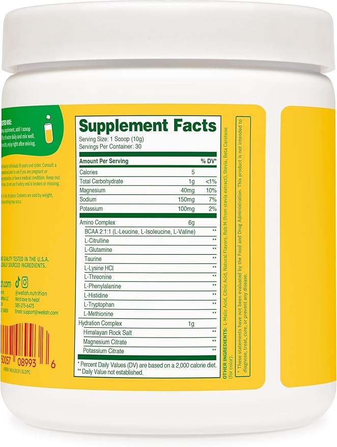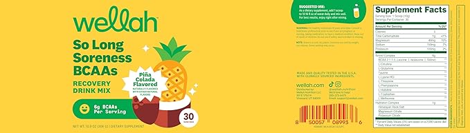 Wellah So Long Soreness BCAA Powder (Pina Colada Flavored) 30 Servings - with Hydration Complex