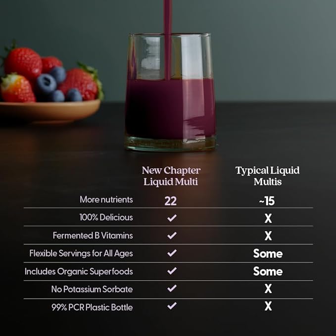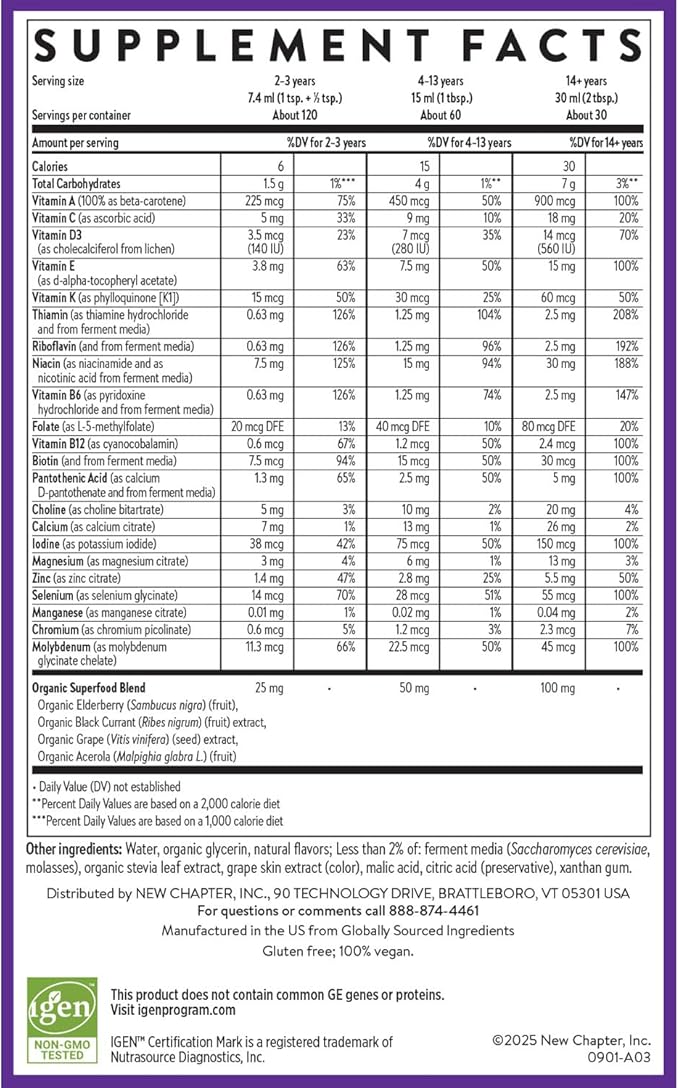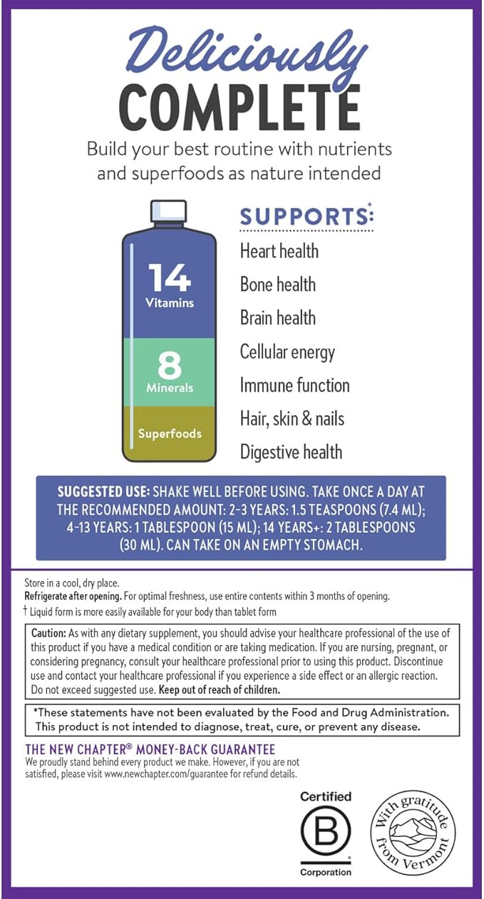 New Chapter Liquid Multivitamin + Mineral Supplement for Whole-Body Benefits, 100% Delicious Multivitamin for Adults, Teens & Kids 2+, Ready to Absorb Faster, Mixed Berry Flavored, 30 oz