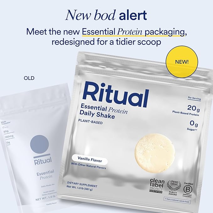 Ritual Vegan Protein Powder with BCAA: 20g Organic Pea Planted-Based Protein from Regenerative Farms in USA, Complete Amino Acid Profile, Gluten Free, Sugar Free, Dairy Free, Vanilla, 1 Lbs