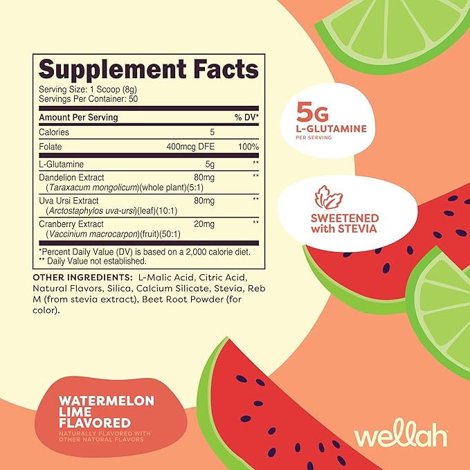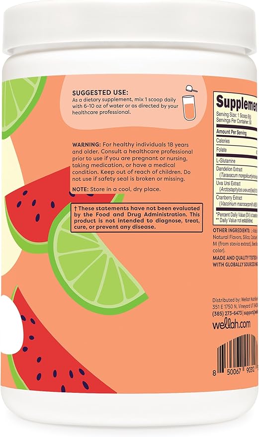 Wellah L-Glutamine Powder Watermelon Lime (50 Servings) - 5g L-Glutamine Per Serving, Sweetened with Stevia