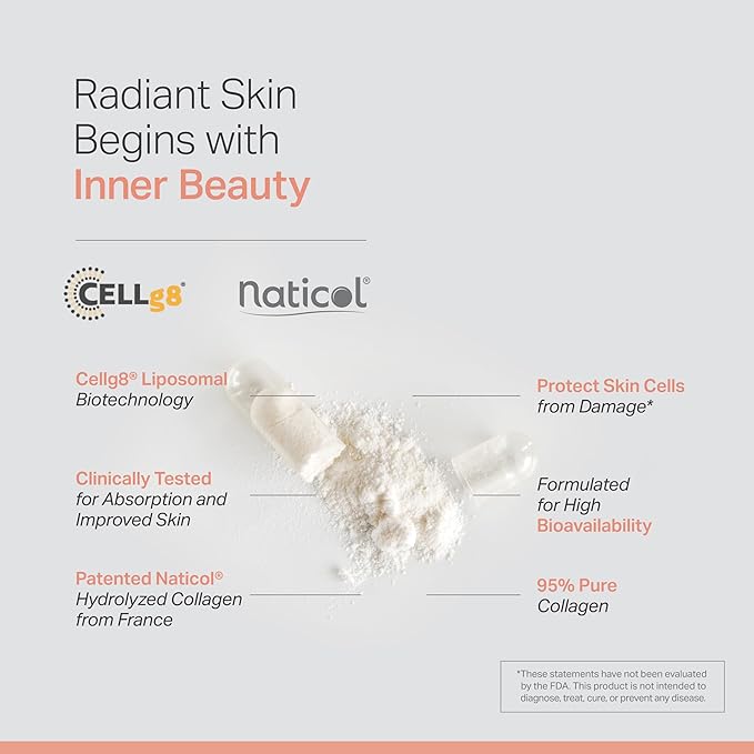 Liposomal Glutathione Supplement with Marine Collagen and Liposomal Vitamin C - Premium Skin Care Supplement - Enhanced Absorption Formula for Radiant Skin, Detox & Antioxidant Support - 60 Capsules
