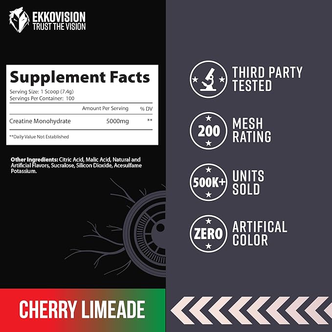 - SUPPORTS PERFORMANCE, ENERGY, ENDURANCE, AND COGNITION: Ekkovision Creatine Monohydrate can help support physical performance during high-intensity workouts, replenish energy for sustained effort, and promotes endurance for longer sessions. By increasing phosphocreatine in your body, it can help power, strength and speed. Emerging research suggests it may also support cognitive focus, making it a versatile addition to your active lifestyle.