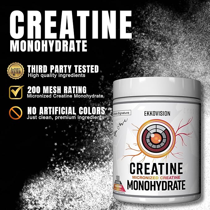 - PURE MICRONIZED CREATINE MONOHYDRATE FOR EASY MIXING: Experience Ekkovision Creatine Monohydrate with a fine, micronized texture that dissolves smoothly in water, juice, or shakes. Enjoy a versatile formula that seamlessly fits into your daily routine, whether for workouts or overall energy and fitness support. Each container delivers 100 servings, making it a practical choice for those committed to their fitness goals.