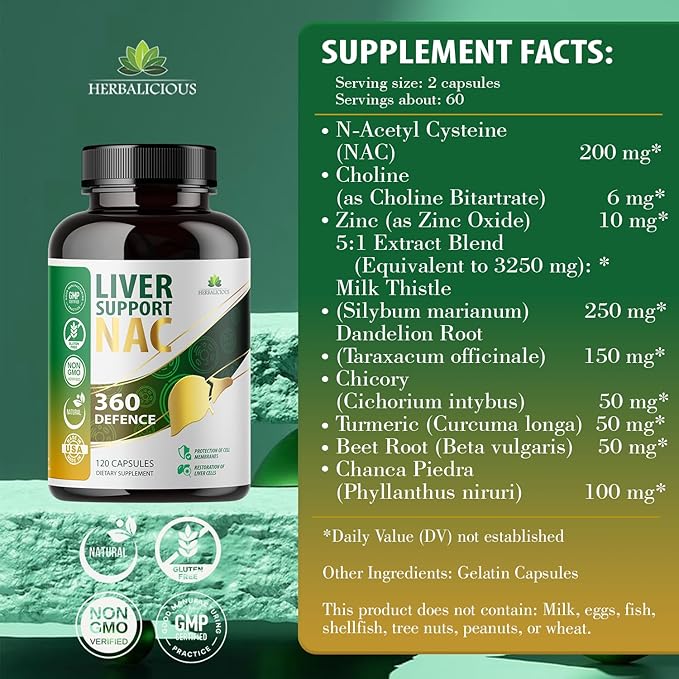- Comprehensive Liver Detox Formula: Packed with N-Acetyl Cysteine (NAC), a powerful antioxidant that supports liver detoxification and protects against oxidative stress.