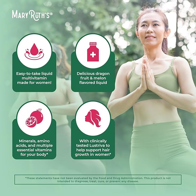 MaryRuth's Liquid Multivitamin + Hair Growth | Clinically Tested in Women for Thicker Hair & Facial Wrinkles | Biotin 10000mcg | Lustriva Hair Growth Supplements | Skin Care | Ages 18+ | 30 Fl Oz
