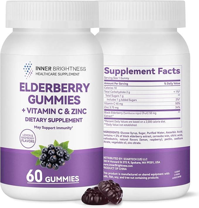 Elderberry Gummies for Adults – 60 Count | Black Elderberry with Vitamin C & Zinc | Immune Support Supplement, Antioxidant Gummies, Non-GMO, Vegan, Gluten-Free, 2-Month Supply