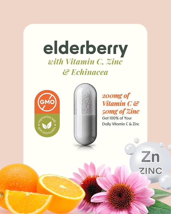- Get 100% of Your Daily Vitamin C & Zinc - Your new favorite elderberry formula is also packed with the complete daily value of your other essential immune boosters — 200mg of Vitamin C & 50mg of Zinc. Everything you need in one convenient serving.