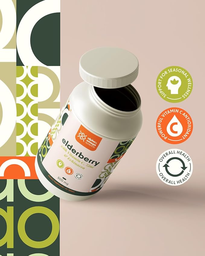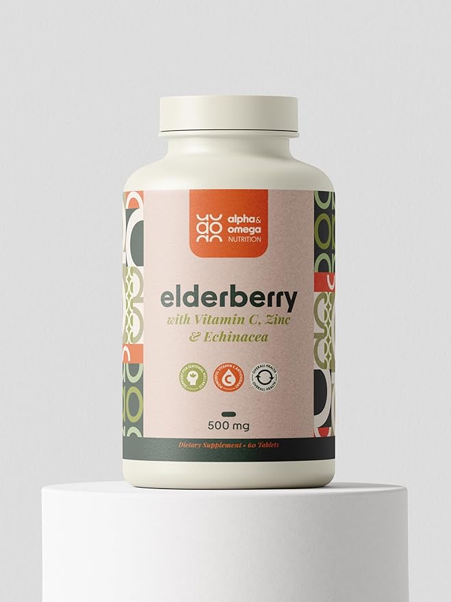 Alpha & Omega Nutrition Elderberry 500mg, with Vitamin C, Zinc and Echinacea, Supports Health Immune System, Antioxidant Protection, Non GMO, 60 Tablets, 2 Month Supply
