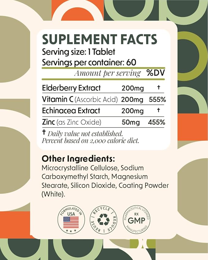 - Special Ingredients : Echinacea, Elderberry, Magnesium Stearate, Vitamin C
