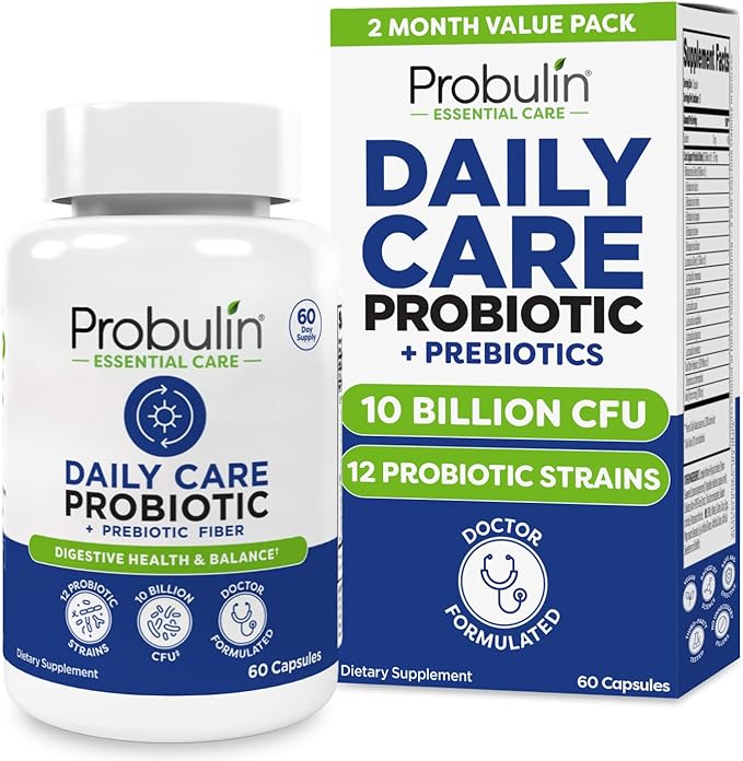 Probulin Daily Care Probiotic Supplement, Digestive, Gut, and Immune Health Support Capsules for Men and Women, 10 Billion CFU, Vegan, 60 Count Bottle