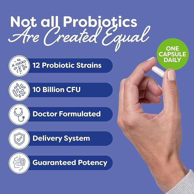 - NATURAL VEGAN FORMULA: Each vegan capsule contains 10 billion CFU and 12 scientifically-studied probiotic strains; our supplements do not contain any dairy, gluten, soy, GMOs, wheat or magnesium stearate