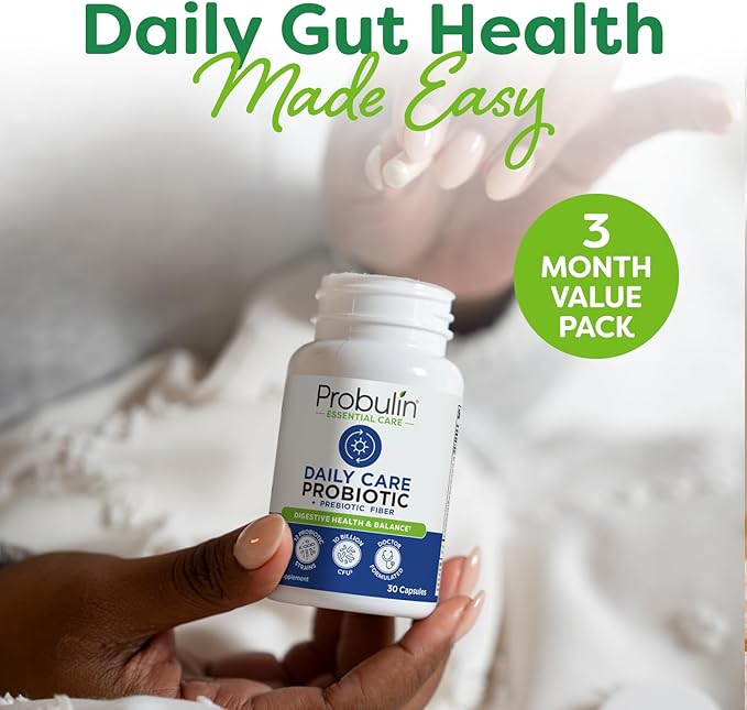 Probulin Daily Care Probiotic Supplement, Digestive, Gut, and Immune Health Support Capsules for Men and Women, 10 Billion CFU, Vegan, 90 Count Bottle
