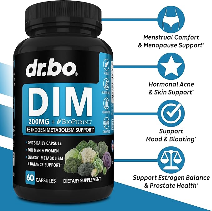- Enhanced with BioPerine: Our DIM 200mg supplement for women & men plus BioPerine is an enhanced dim estrogen supplement for skin acne supplements, metabolism & androgen hormone balance for women & men