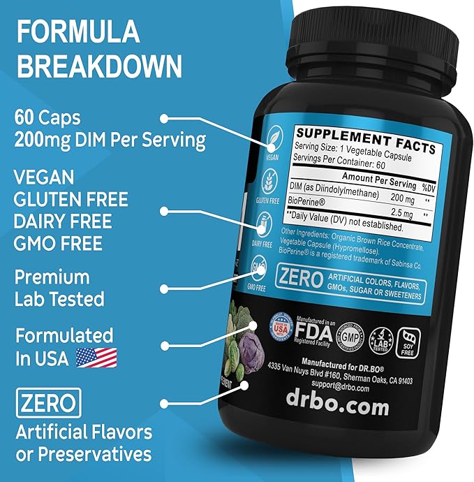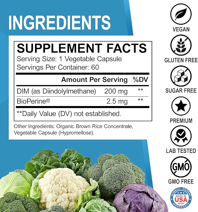- Special Ingredients : DIM, Diindolylmethane, Gluten Free, Natural