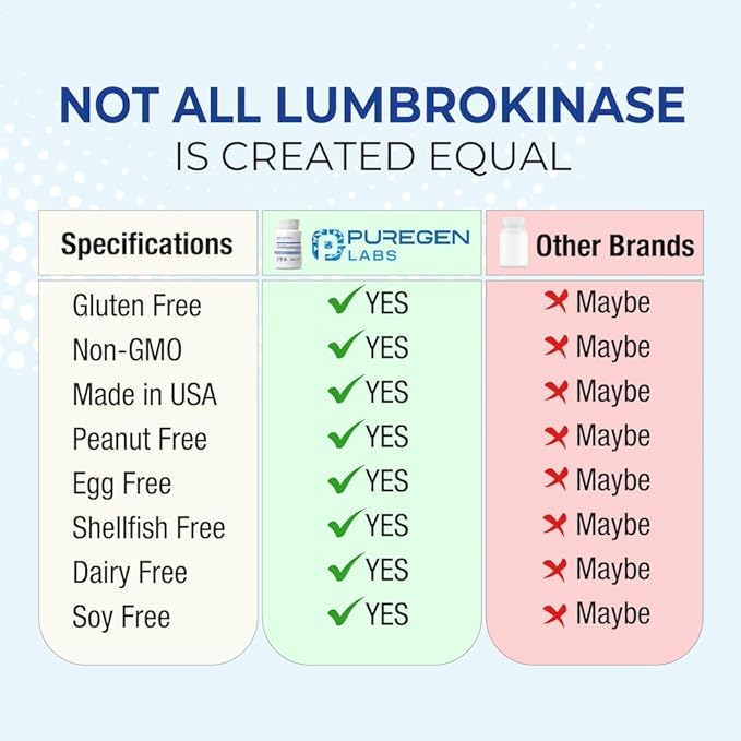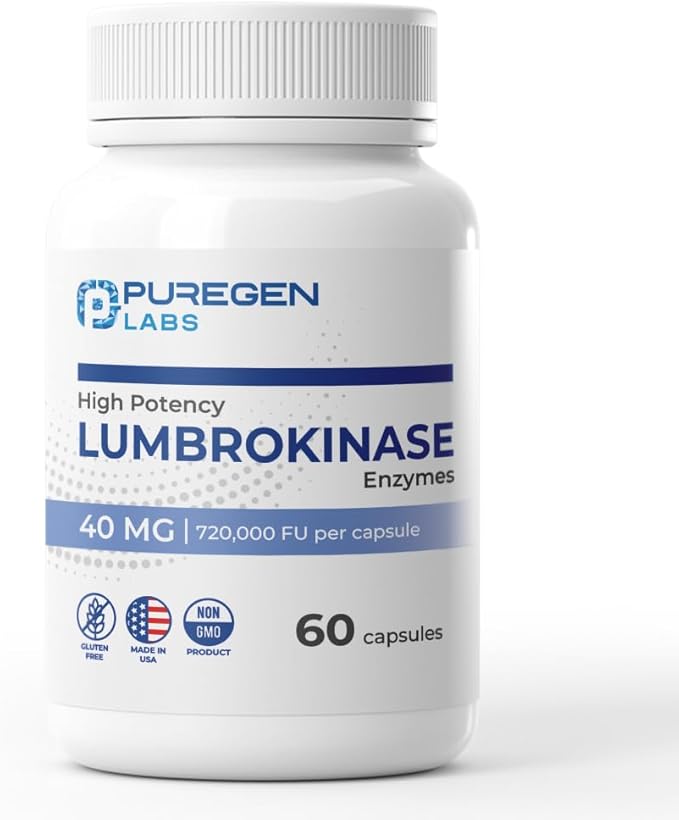 Puregen Labs Lumbrokinase 40mg per Capsule High Potency Supplement | High Activity Lumbrokinase Enzymes | No Harmful Additives | Non-GMO | Gluten Free | Made in USA - 60 Vegetarian Capsules