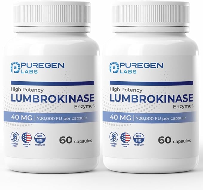 Puregen Labs Lumbrokinase 40mg per Capsule High Potency Supplement | High Activity Lumbrokinase Enzymes | No Harmful Additives | Non-GMO | Gluten Free | Made in USA - Total 120 Vegetarian Capsules