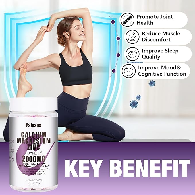 - Extra Power: Patxans calcium magnesium zinc supplements are also available as Magnesium Glycinate, which is good for muscles, nervous system, sleep support and relaxation of the brain, contributing to deep & restful sleep, plus vitamin D3 and Elderberry, sea moss to help the body absorb calcium & other nutrients, Can boost immunity and has high antioxidant support. Reduce discomfort caused by age, weight, or deteriorating joint mobility.