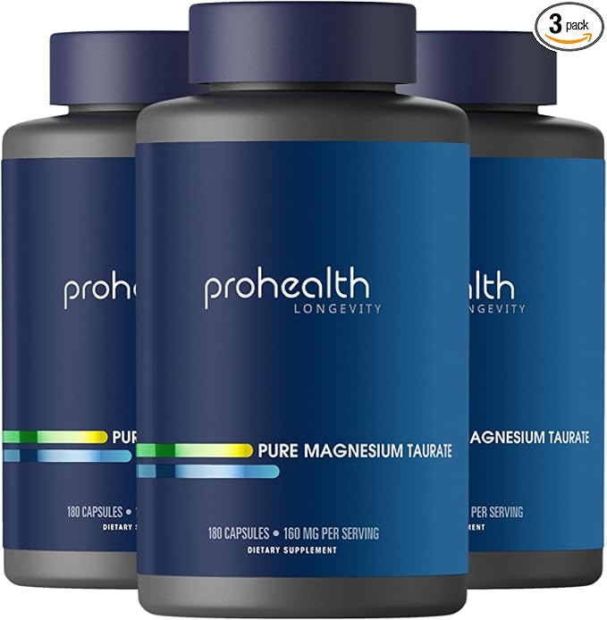 ProHealth Pure Magnesium Taurate, 160mg per Serving | Optimal Bioavailability Supplement for Healthy Aging | Supports Brain, Heart, and Muscle Health | Third-Party Tested | 180 Capsules (3 Pack)
