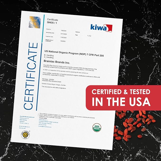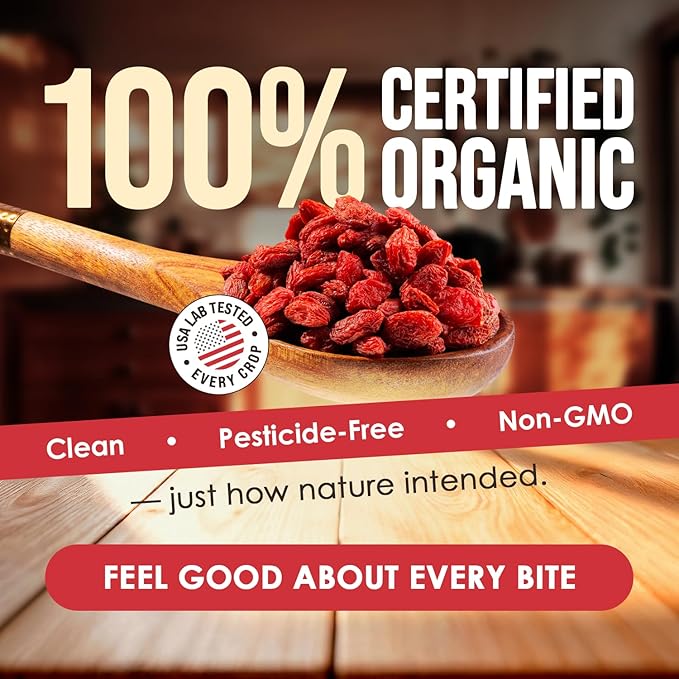 - RAW AND USDA ORGANIC VERIFIED - Our goji berries are raw and USDA organically verified, ensuring it is non-GMO and free from harmful chemicals, including agrochemicals