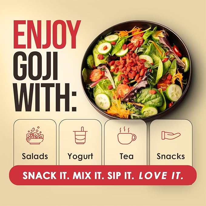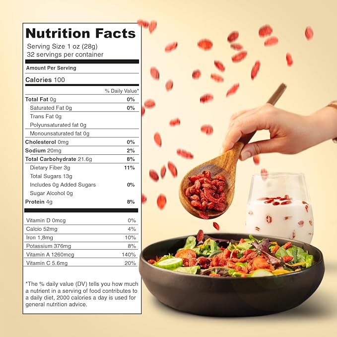 - A NOURISHING SNACK - Goji berries are rich in fiber, protein, vitamin A, vitamin C, amino acids, minerals, and antioxidants, contributing to overall health and well-being. Plus our extra large size means you get more of the delicious flavor and nutrients you love