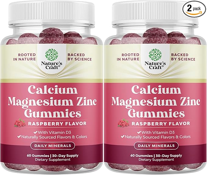 Calcium Magnesium Zinc Gummies - Magnesium Zinc Calcium Supplement Gummies with Vitamin D3 for Teeth and Bone Health - Certified Kosher Non-GMO Gelatin Free & Vegetarian Friendly (2 Month Supply)