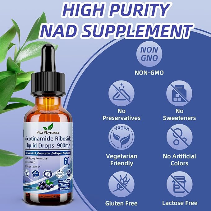 - WHY YOU NEED NAD SUPPLEMENTS: Vita PLynexra NAD Supplements for women & men supports your ability to stay healthy by boosting NAD+ levels, which naturally diminish with age. NAD+ plays a crucial role in cellular function and repair, bolstering brain, heart & muscle health*, cellular energy production, repair processes, and effective management of lifestyle stress*. Our high-potency 6-in-1 NAD Nicotinamide Riboside Resveratrol 900mg & Quercetin, Niacin, Collagen, Biotin supplement is more effective at increasing NAD+ levels than other precursors like single NMN, niacinamide, or niacin