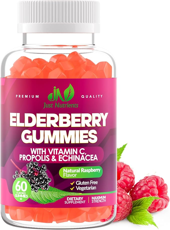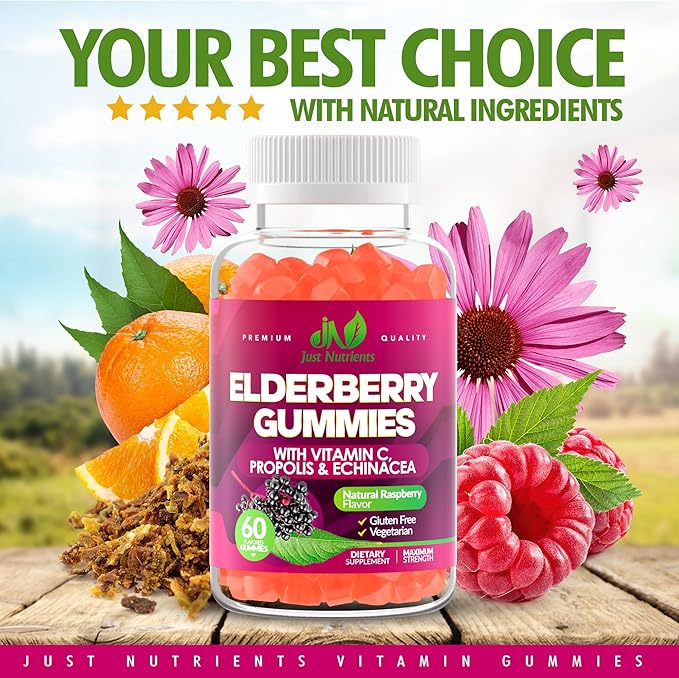 Elderberry Gummies with Vitamin C, Echinacea, Propolis (60 count) - Immune Support for Adults & Kids - Maximum Strength, Great Tasting Raspberry Flavor - Gluten-Free, Vegan - 60 Gummies