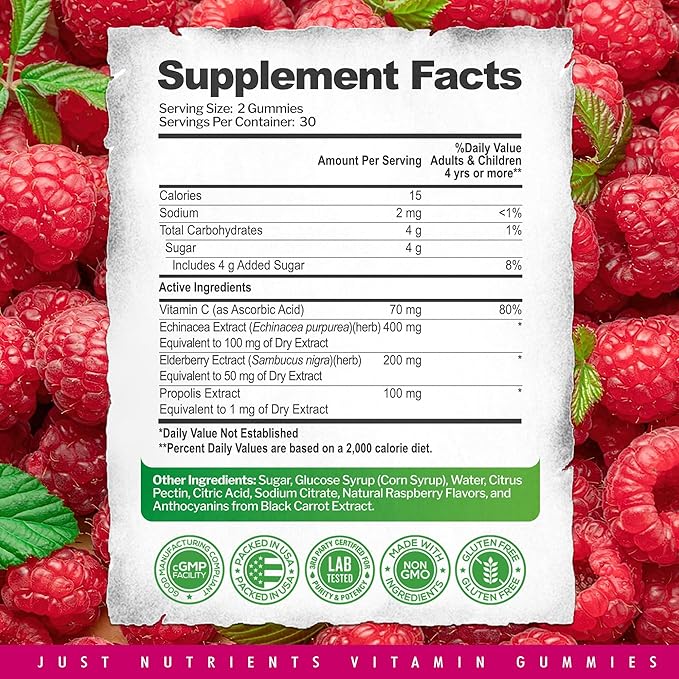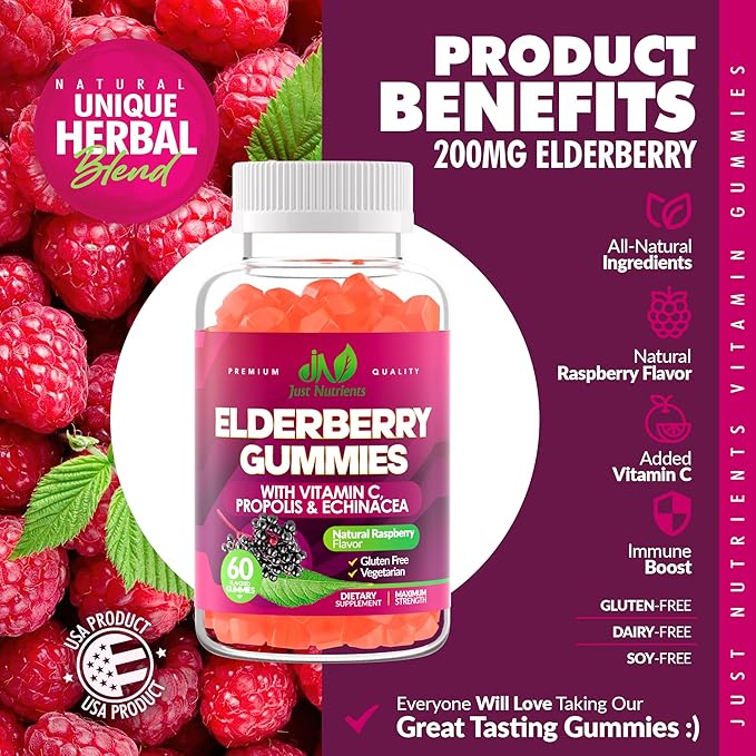 - Delicious Raspberry Flavor - The whole family will enjoy taking our Elderberry gummies with the delicious raspberry flavor.