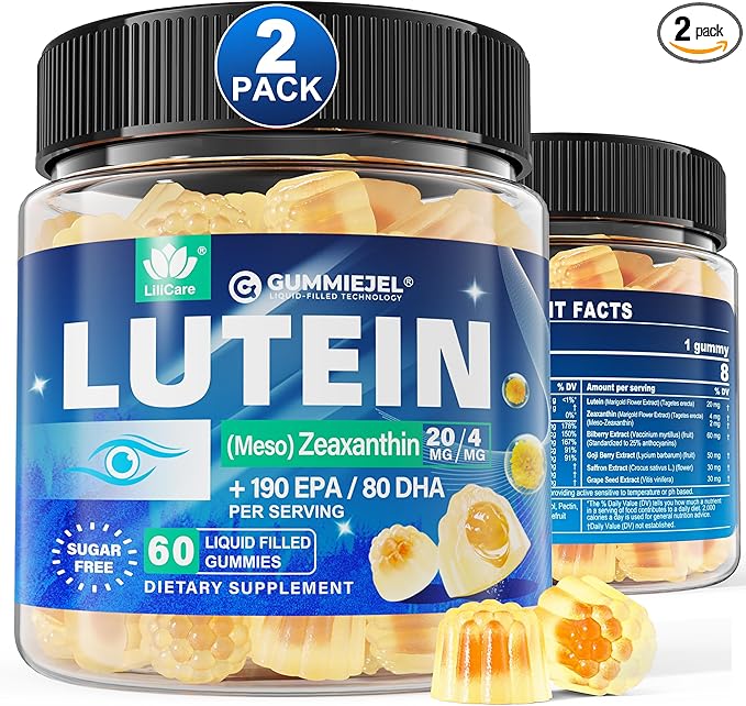 - 【Upgraded Lutein Zeaxanthin Gummies】With GummieJel Gummie Filling Technology, the active substance ( 20mg Lutein & 4mg Zeaxanthin) is encapsulated within the inner layer of each pectin gummy, thereby Locks in nutrients and freshness without refrigeration. Provides 3 layers of comprehensive blue light defense for the retina.