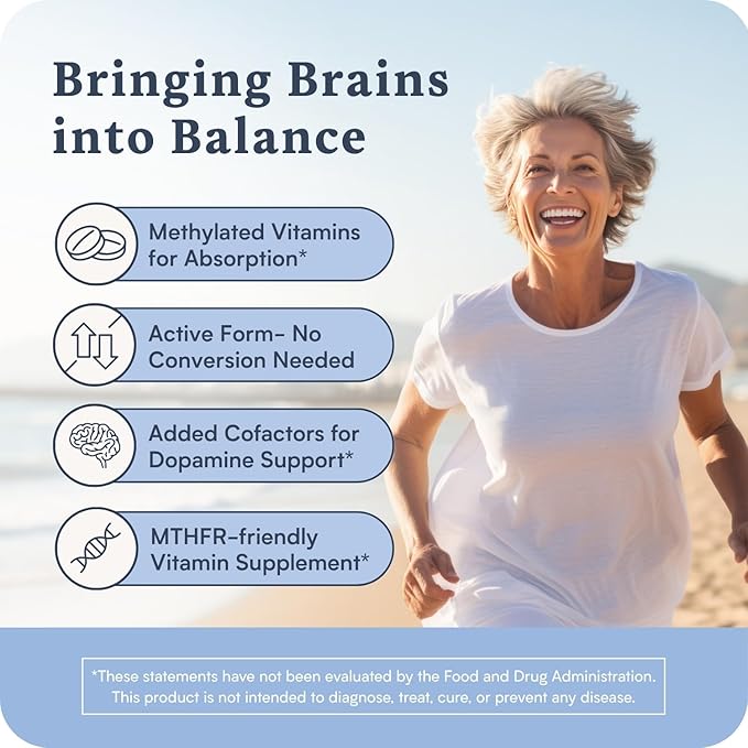 - ✅ Bioavailable & Methylated Multivitamin – Contains Brain-Ready nutrients: L-methylfolate (5-MTHF), Methylcobalamin (B12), P5P (Pyridoxal-5'-phosphate, B6) and L-tyrosine the ideal MTHFR supplement.