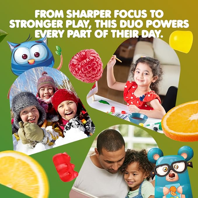 - Big Support for Little Learners: Give your little ones a daily dose of support! Our omega 3 kids gummies help with focus & brain health, while our toddler multivitamins help with immune and developmental support. Great for busy school days & beyond.