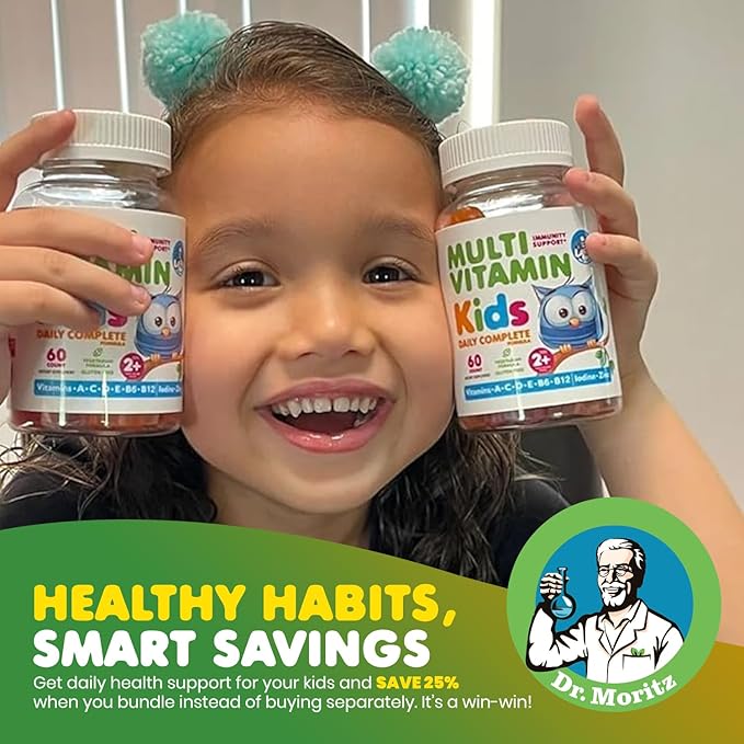 DR. MORITZ Omega 3 Gummies (90 Count) and Kids Multivitamin Gummies Bundle (60 Count) - for Daily Health Support - Vegan DHA Omega 3 for Kids - Non-GMO Toddler Vitamins -Yummy Kid Vitamins