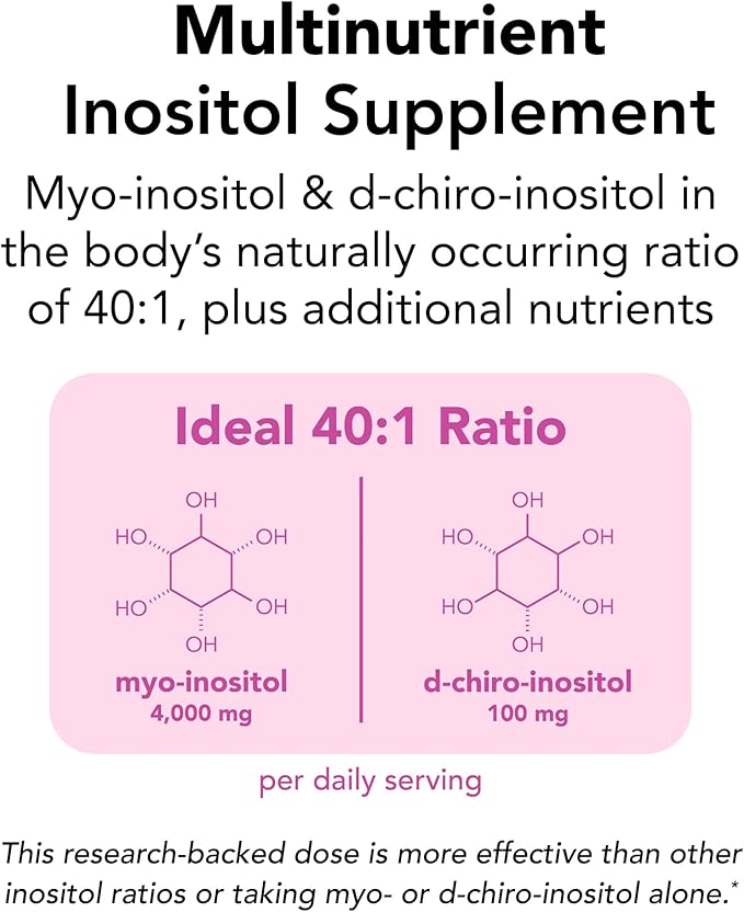 - Multinutrient Inositol Supplement: Provides 4000 mg myo-inositol & 100 mg d-chiro inositol to mimic the body’s natural 40:1 ratio, plus additional nutrients to enhance absorption & optimize metabolic health*
