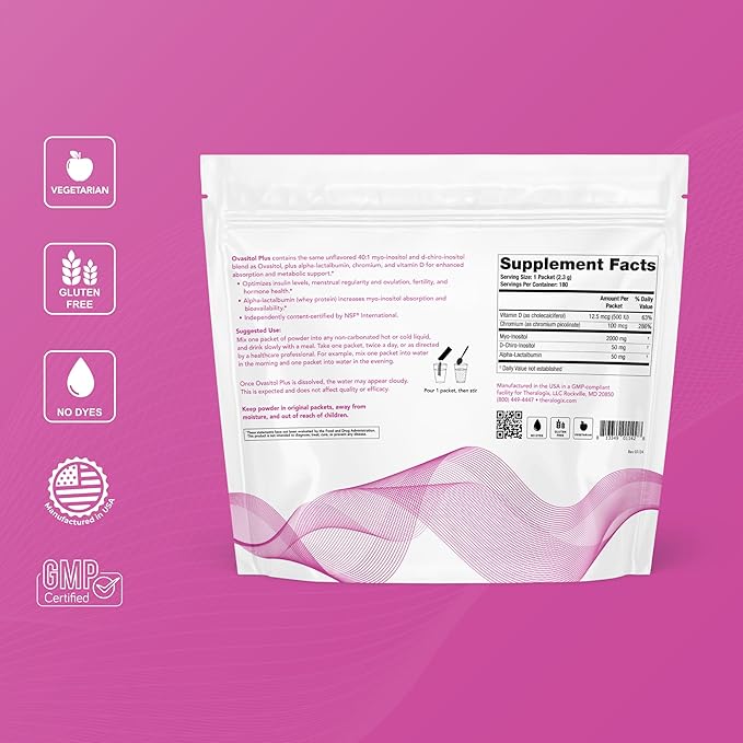 Theralogix Ovasitol Plus Metabolic Health Supplement - Myo-Inositol & D-Chiro Inositol+Chromium Picolinate+Alpha-lactalbumin & Vitamin D - 90-Day Supply - Unflavored - 180 Count